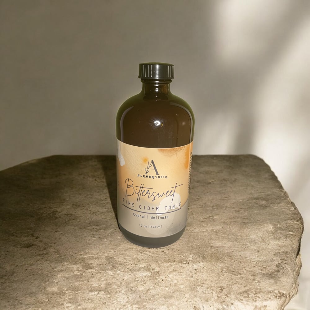 Ingredients: water, apple cider vinegar, wildflower honey, orange juice, Garlic Cloves, Ginger Root, Horseradish Root, Lemon, Onion, Orange, Habanero Pepper, Turmeric Root, Black Peppercorn, Cinnamon, Potassium Sorbate.